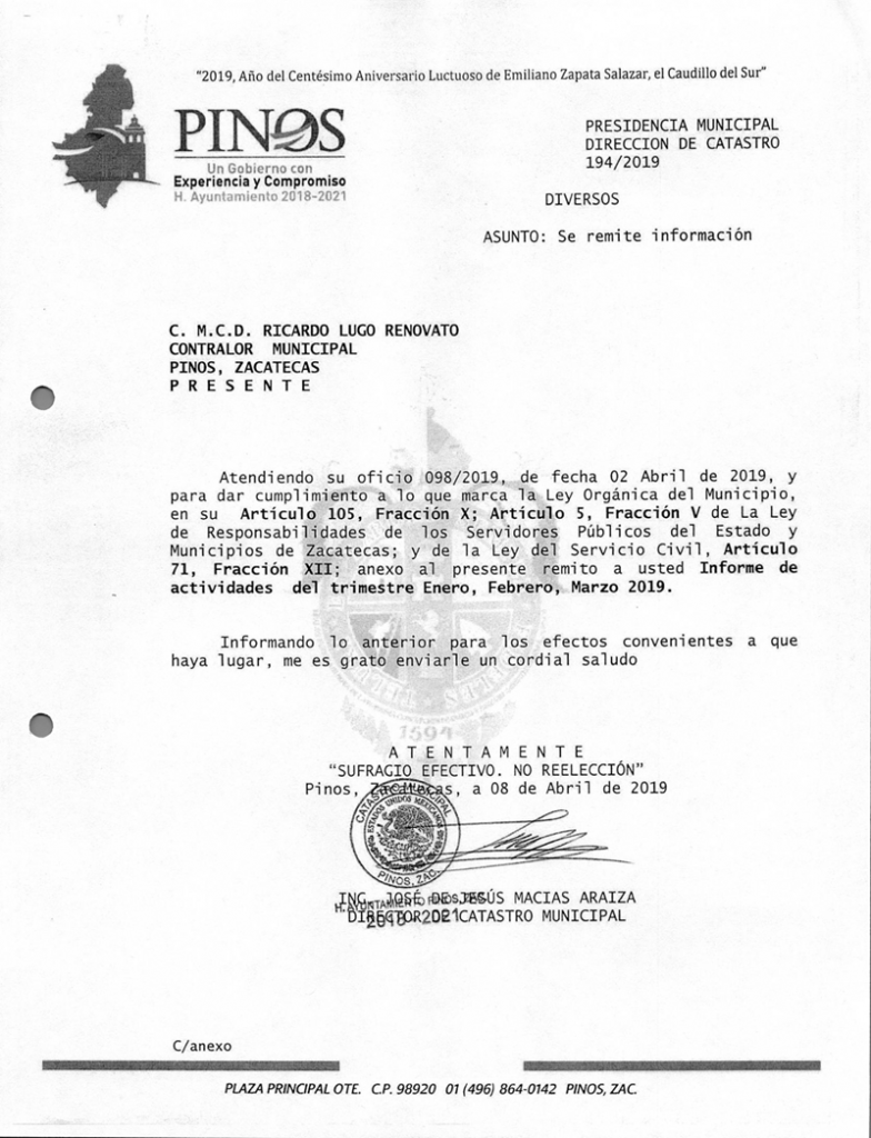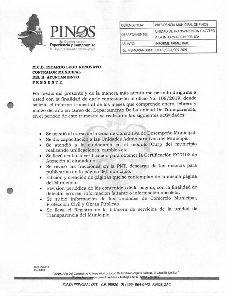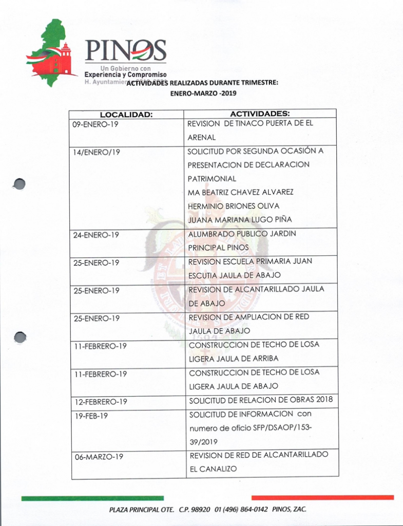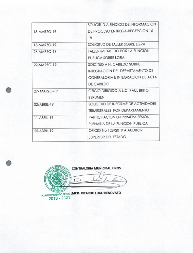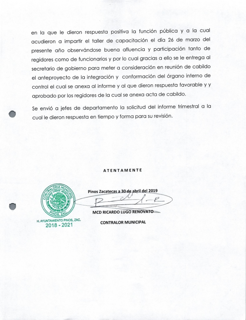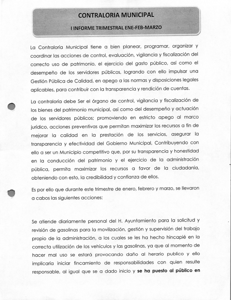 (Enero, Febrero y Marzo) 2019 CONTRALORIA