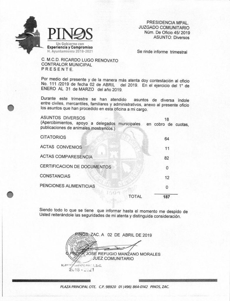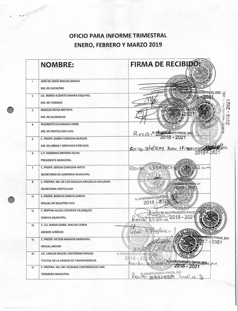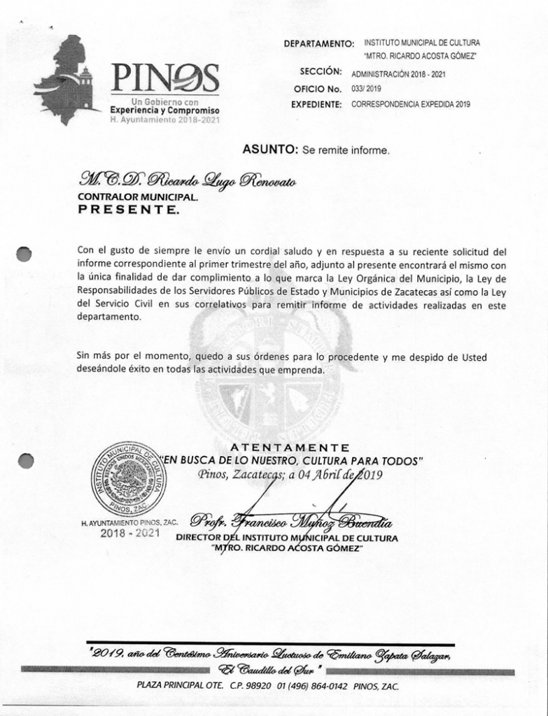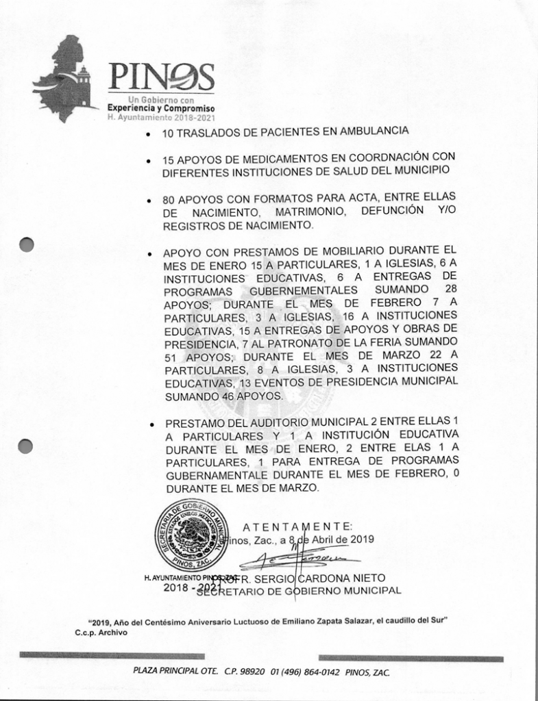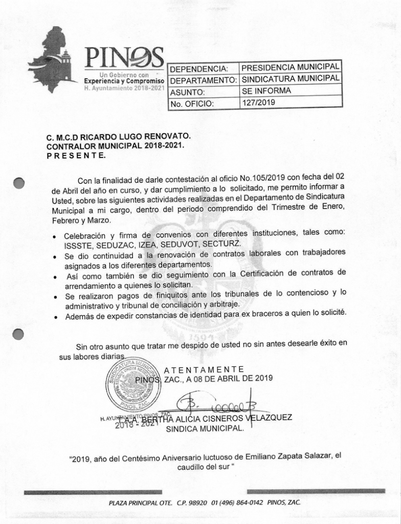 (Enero, Febrero y Marzo) 2019 CONTRALORIA