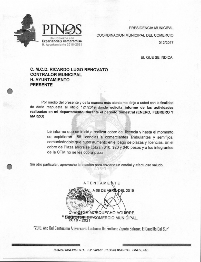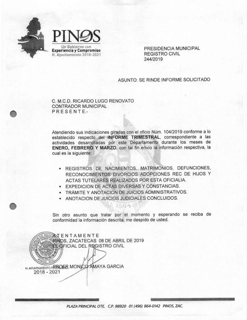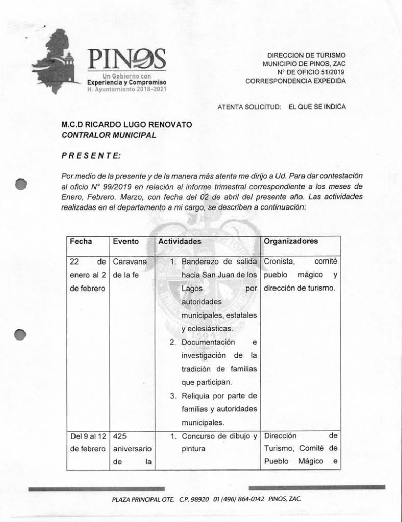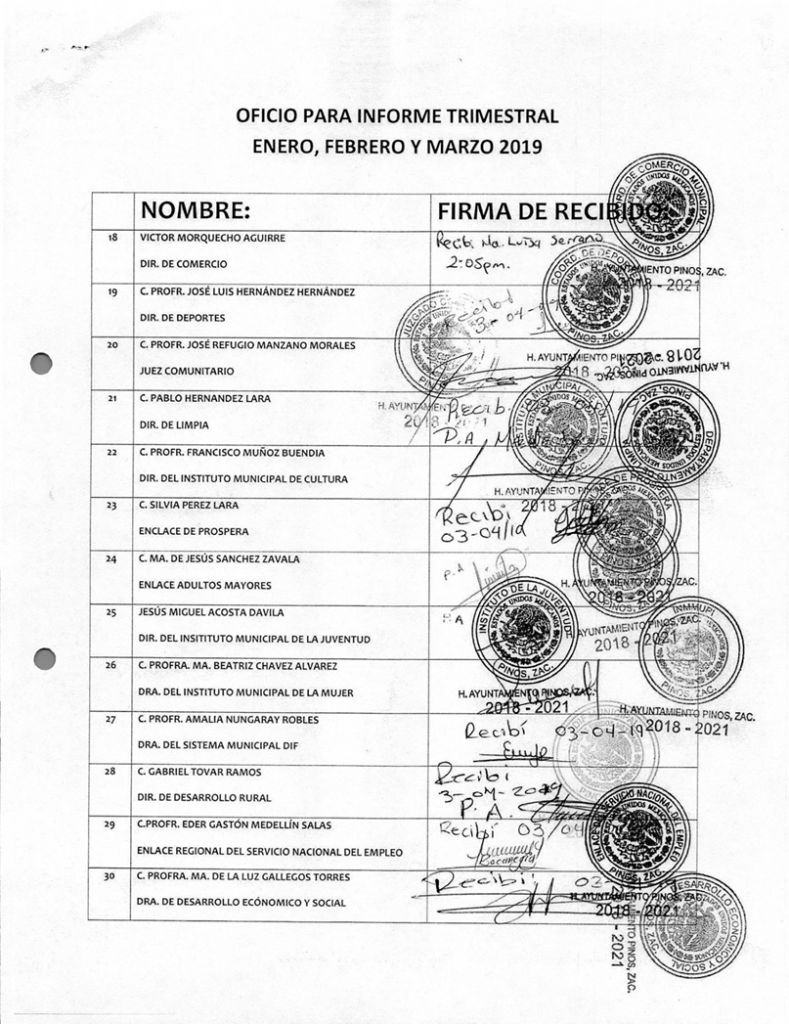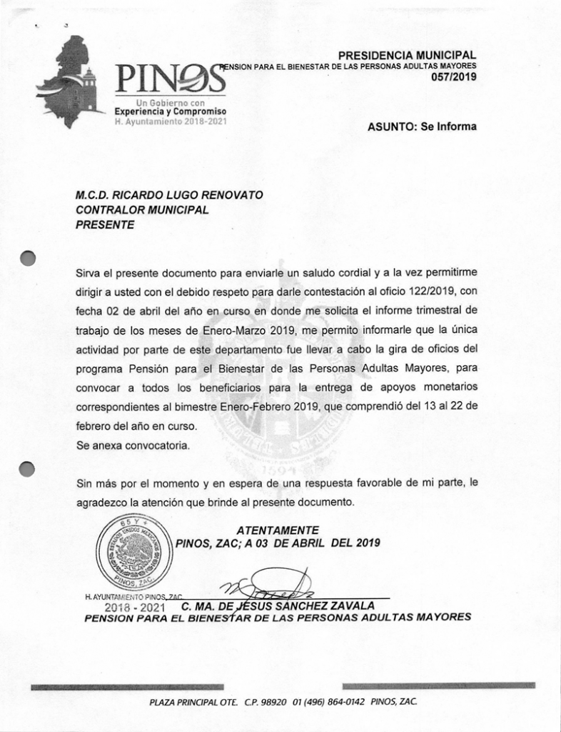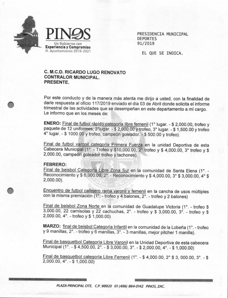 (Enero, Febrero y Marzo) 2019 CONTRALORIA